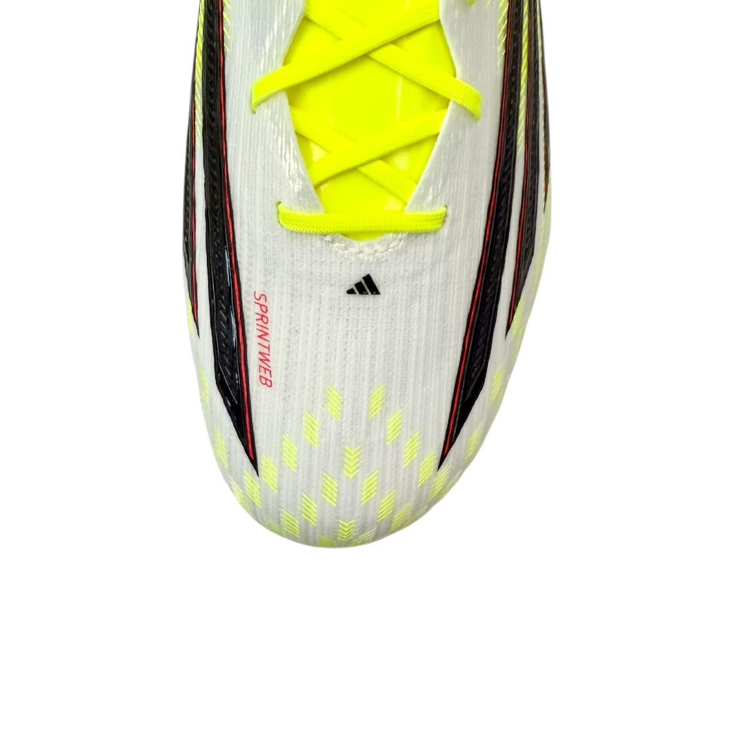 It’s back, and it’s faster than ever. Off the charts for acceleration, the F50 returns ready to terrify defences once again.The iconic boot’s been reimagined using the latest lightweight tech, with adi tuning it for angled bursts of pace as well as straight-line speed.The all-new Sprintframe 360 soleplate features rounded midfoot studs to allow those quick, decisive cuts that unsettle opponents, while the stabilising external heel counter keeps you balanced and in control as you dart through the gaps.Taking cues from the F50’s superlight heritage, the Fibertouch upper provides a streamlined feel, offering support only where you need it to maintain comfort without slowing you down.✨