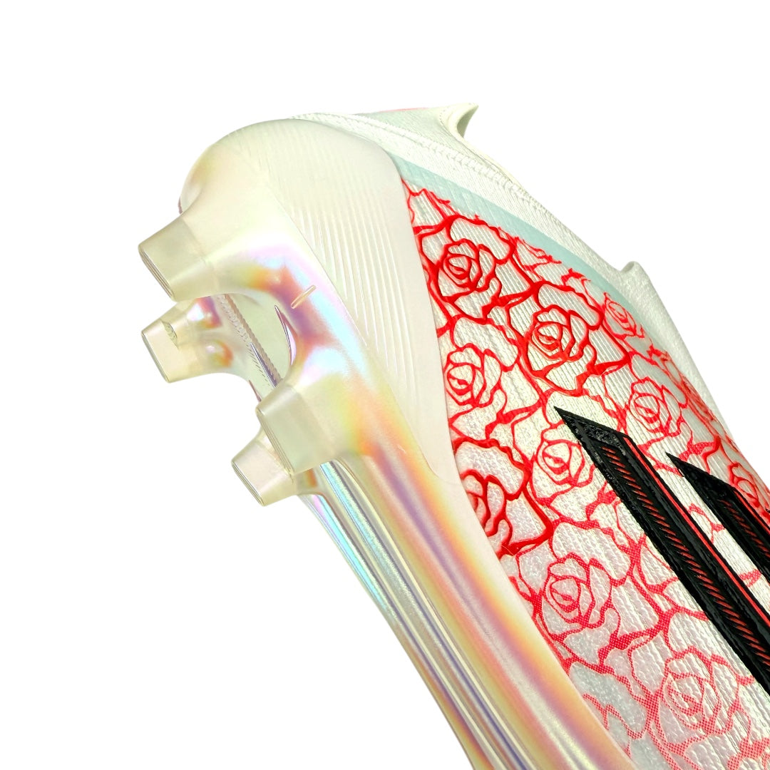 Loved by fans. Feared by rivals. Play with pace and passion wearing adidas F50 Elite Laceless x Lamine Yamal FG football boots in Ftwr White/Core Black/Lucid Red. Wrapped in a red-and-white rose graphic, they’re the third signature-edition colourway for football’s heartbreaker, Lamine Yamal.