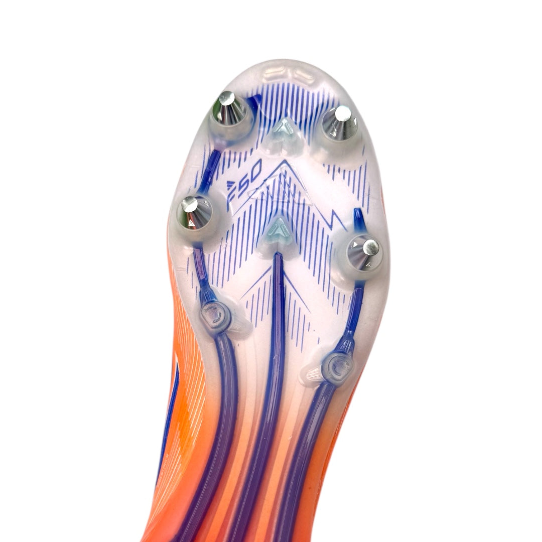 It’s back, and it’s faster than ever. Off the charts for acceleration, the F50 returns ready to terrify defences once again.The iconic boot’s been reimagined using the latest lightweight tech, with adi tuning it for angled bursts of pace as well as straight-line speed.The all-new Sprintframe 360 soleplate features rounded midfoot studs to allow those quick, decisive cuts that unsettle opponents, while the stabilising external heel counter keeps you balanced and in control as you dart through the gaps.Taking cues from the F50’s superlight heritage, the Fibertouch upper provides a streamlined feel, offering support only where you need it to maintain comfort without slowing you down. Grippy Sprintweb 3D texturing enhances ball contact for dribbling at high speeds, and it extends all the way to the toe for even more precision✨